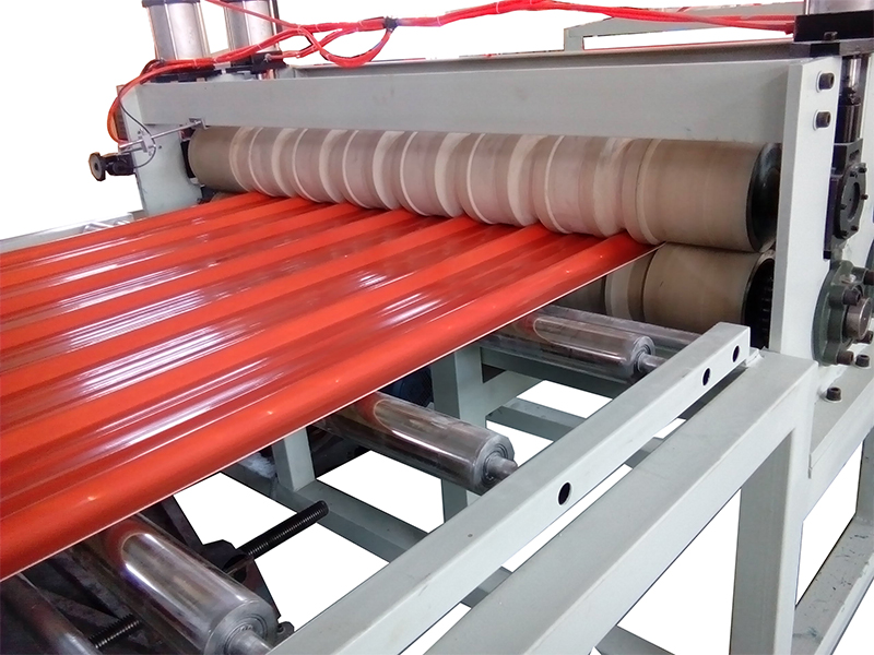 If replacing the relevant components, this line also can produce the PC transparent wave plate, PP wave panel, chequer plank,PVC,UPVC sheet, 3-layer co-extrusion color PC, PP, PVC wave plate.